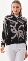 Detay: Uzun kol, desenli, fermuar kapamalı ceket;