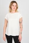 Detay: Kısa kollu ve bisiklet yaka tasarımıyla sade bir şıklık sunan bu bluz, omuzlarındaki süs düğme detaylarıyla zarif bir dokunuş kazanıyor. Viskonlu kumaşı sayesinde hafif ve nefes alabilir bir yapı sunarak gün boyu konforlu bir kullanım sağlıyor. Günlük kombinlerden özel davetlere kadar geniş bir kullanım alanı sunan bu tasarım, gardırobunuzun vazgeçilmez parçalarından biri olmaya adaydır;