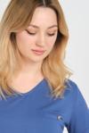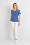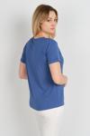 Kadın Kısa Kollu Süs Cep Detaylı Duble Kol Bluz 4110 Indigo