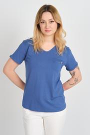 Sistas Kadın Kısa Kollu Süs Cep Detaylı Duble Kol Bluz 4110 Indigo