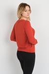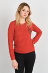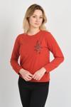 Kadın Taş ve Boncuk Süslemeli Uzun Kollu Bluz 24589 Kiremit