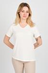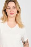 Detay: Bu bluz modeli; kısa kollu, V yaka, yakası ince tül detaylı, boncuk işlemeli ve işleme detaylı tasarımıyla zarafeti ön plana çıkarır. İnce tül ve boncuk işlemeleri modele sofistike bir dokunuş katarken, işleme detayları özgün bir stil yaratır. Günlük kombinlerde ve özel davetlerde şıklığınızı tamamlayacak bir seçenek sunar;
