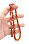 Kehribar taşı, doğal güzelliği ve benzersiz dokusuyla dikkat çeken bir materyaldir; Sıkma kehribar, geleneksel yöntemlerle işlenmiş ve her bir tesbih tanesi özenle seçilmiştir; Sarı renk tonuyla dikkat çeken bu tesbih, günlük kullanım için ideal bir aksesuardır; Beyzi kesim tasarımı, klasik ve zamansız bir görünüm sunar; Sistemli yapısı sayesinde kolayca taşınabilir ve her zaman yanınızda taşıyabilirsiniz;