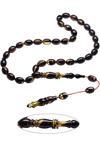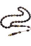 Siyah şeffaf renkli ultra parlak kısa bir sürede renk alan ve koku veren kaliteli ateş kehribar reçine kullanılmıştır. Her kehribar tanesi birbirinin aynısı olmadığı için küçükte olsa farklılıklar gösterebilir.