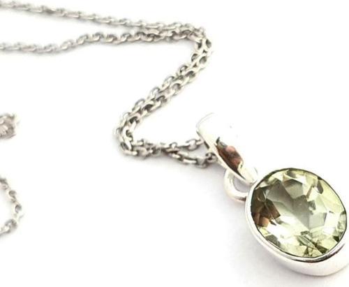 Sitrin Taşlı 925 ayar Gümüş Tek Taş Doğal Taş Kolye