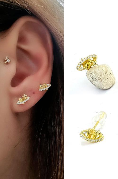 Sitrin Taşlı 925ayar Gümüş Satürn Minimal Küpe