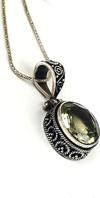 925 Gümüştür. Zincir uzunluğu 50 cm dir .Kolye ucu boyutu 2.5 cm dir