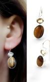Sitrin Taşlı Kaplan gözü Taşı 925ayar Gümüş Tasarım Küpe