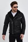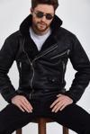 Sivaist Erkek Siyah Napa Deri İçi Kürklü Mont&Ceket