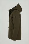 Erkek Yeşil Pamuk Polyester Karışımlı Kürklü Çıkartılabilir Kapüşonlu Mont&Kaban
