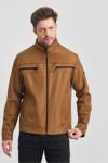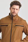 Sivaist Kahverengi Erkek Pamuk Polyester Karışımlı Çift Göğüs Fermuarlı Su Ve Rüzgar Geçirmez Mevsimlik&Yazl