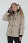 Lela Yakası Suni Kürklü Kapüşonlu Cepli Kız Çocuk Mont 6028720 EKRU