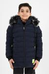Sivaist Lacivert Erkek Çocuk Çıkartılabilir Kapüşonlu Şişme Deri Karışımlı Kumaş Mont&Kaban