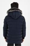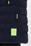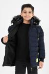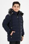 Lacivert Erkek Çocuk Çıkartılabilir Kapüşonlu Şişme Deri Karışımlı Kumaş Mont&Kaban