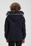 Kapüşonlu yaka tipi baş ve boyun bölgesini soğuktan korurken şık bir görünüm kazandırır
