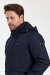 Lacivert İçi Kalın Kürklü Çıkartılabilir Kapüşonlu Rüzgar Ve Su Geçirmez Mont&Kaban
