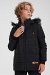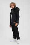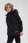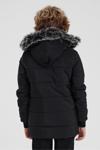 Sivaist Siyah Erkek Çocuk Su Ve Rüzgar Geçirmez Çıkartılabilir Kapüşonlu Yıkanabilir Içi Kürklü Mont