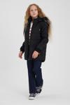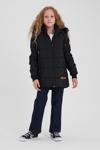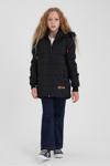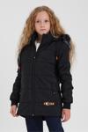 Sivaist Siyah Kız Çocuk Su Ve Rüzgar Geçirmez Çıkartılabilir Kapüşonlu Yıkanabilir Içi Kürklü Mont &
