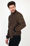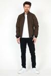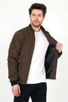 Sivaist Yeni Sezon Erkek Kahverengi Mevsimlik Triko Ve Deri Biye Detaylı Fermuarlı İç Cepli Mont&Ceket