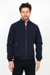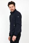 Sivaist Yeni Sezon Erkek Lacivert Mevsimlik Triko Ve Deri Biye Detaylı Fermuarlı İç Cepli Mont&Ceket