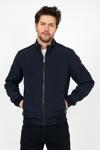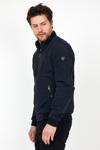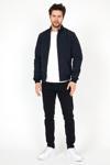 Sivaist Yeni Sezon Erkek Lacivert Mevsimlik Triko Ve Deri Biye Detaylı Fermuarlı Iç Cepli Mont&Ceket