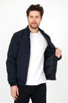 YENİ SEZON ERKEK LACİVERT MEVSİMLİK TRİKO VE DERİ BİYE DETAYLI FERMUARLI İÇ CEPLİ MONT&CEKET