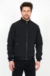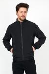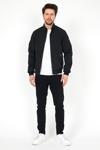 YENİ SEZON ERKEK SİYAH MEVSİMLİK TRİKO VE DERİ BİYE DETAYLI FERMUARLI İÇ CEPLİ MONT&CEKET
