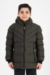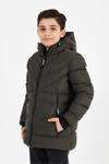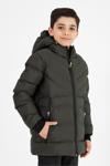 Sivaist Yeşil Erkek Çocuk Sabit Kapüşonlu Şişme Deri Karışımlı Kumaş Mont&Kaban