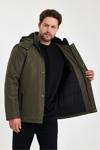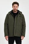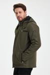 Sivaist Yeşil İçi Kalın Kürklü Çıkartılabilir Kapüşonlu Fermuar Çepli Rüzgar Ve Su Geçirmez Mont&Kaban
