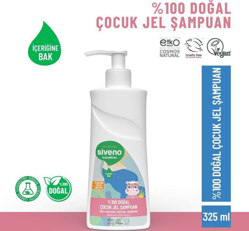 Siveno %100 Doğal Bebek Çocuk Jel Şampuanı Yenidoğan Saç Vücut Konak Önleyici 325 ml