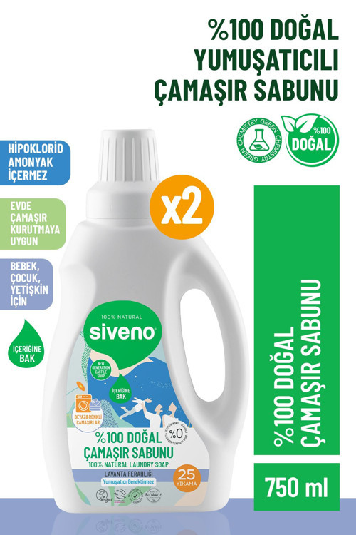 Siveno %100 Doğal Çamaşır Sabunu %100 Bitkisel Deterjan Yumuşatıcı Gerektirmez Konsantre 750 ml X 2 Adet