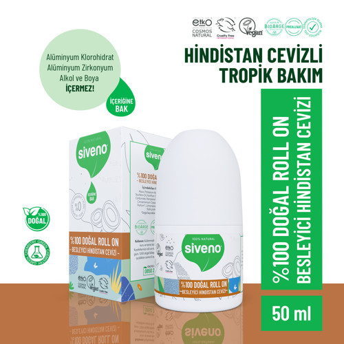 Siveno %100 Doğal Roll On Hindistan Cevizli Deodorant Ter Kokusu Önleyici Bitkisel Lekesiz Vegan 50 ml