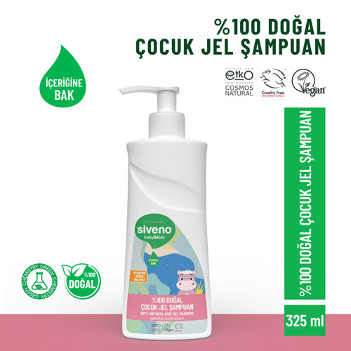 Siveno %100 Doğal Bebek Çocuk Jel Şampuanı Yenidoğan Saç Vücut Konak Önleyici 325 ml