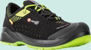 Sixton marka, siyah ve neon yeşil renkli, delikli iş güvenliği ayakkabısı. Hem şık hem de güvenli bir çalışma ortamı için idealdir.