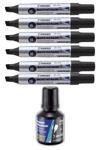 Ürün Adı: Siyah 10 mm Kesik Uçlu Markör Permanent Kalem 6 Adet ve Siyah Mürekkep 1 Adet Çuval Koli Kalemi