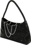 Siyah taşlı zincir askılı kulplu çift taraflı siyah abiye çanta.
