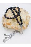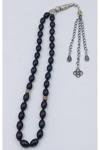 Üretildiği malzeme: Ateş kehribar Ana renk: Siyah İmame maddesi: Alpaka Tane ölçüsü: 8x12 Toplam uzunluk: 37 cm Ağırlık: 28 gram;