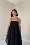 Siyah Askılı Parçalı Müslin Elbise