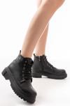 Siyah Bağcıklı Fermuarlı Günlük Kadın Bot