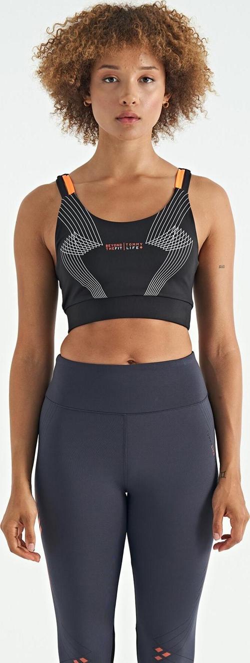 Tommy Life Antrasit Renk Bloklu Sırt Baskı Detaylı Dar Kalıp Kadın Büstiyer - 97253
