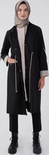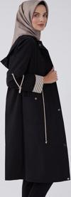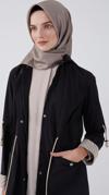 Kumaş dirsek kısmı aller tünel detaylı kapüşonu lastik ve brit düğmeli ön yaka kısımları cepli pat kısmı ve cepleri çıt çıtlı camel trenç.