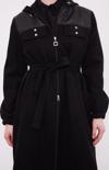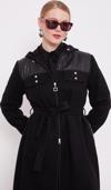 Siyah Belden Bağlamalı Kaipşonlu Kaşe Kaban
