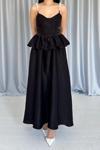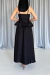 Siyah Beli Büzgülü İnci Askılı Uzun Elbise
