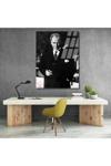 Siyah Beyaz Atatürk Portresi Cam Tablo Mustafa Kemal Atatürk Tablo Modeli Ev Ofis Dekoru