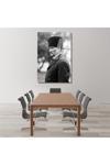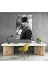 Siyah Beyaz Karizmatik Atatürk Görseli Cam Tablo Dikey Duvar Tablosu Ev Ofis Dekoru - Image 1