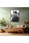 Artarilion Siyah Beyaz Görsel Kemal Atatürk Metal Çerçeveli Cam Tablo Modeli Dikey Duvar Tablosu Ofis Ev Dekoru
