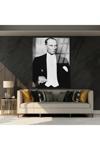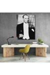 Siyah Beyaz Karizmatik Atatürk Görseli Cam Tablo Dikey Duvar Tablosu Ev Ofis Dekoru