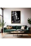 Artarilion Siyah Beyaz Mustafa Kemal Atatürk Tablo Metal Çerçeveli Cam Tablo Dikey Tablo Salon Ofis Tablosu
