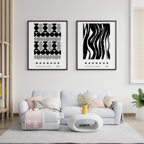 Prydesign Siyah Beyaz Şekiller Duvar Tablosu Çerçeveli 2'li Set Siyah Renk 35 x 50 Boyut/Ebat