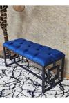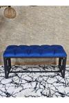 Zafir Siyah Boyalı İçi Kareli Diktörtgen 100 cm x 40 cm Oturak Puf - Bench - Makyaj Oturağı - Oturak Mavi Renk 100 x 40 Boyut/Ebat